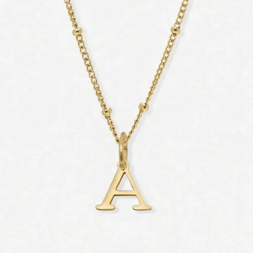 The satellite bead chain adds gentle texture, while the alphabet charm introduces a simple point of focus without overpowering the design. Each letter is proportioned to feel refined and wearable, making the necklace suitable for everyday styling.