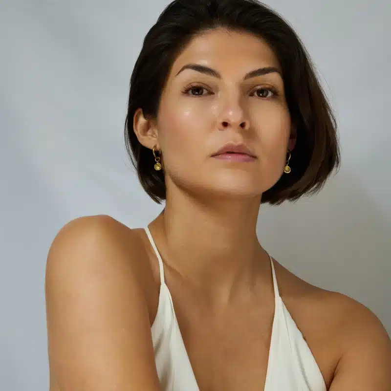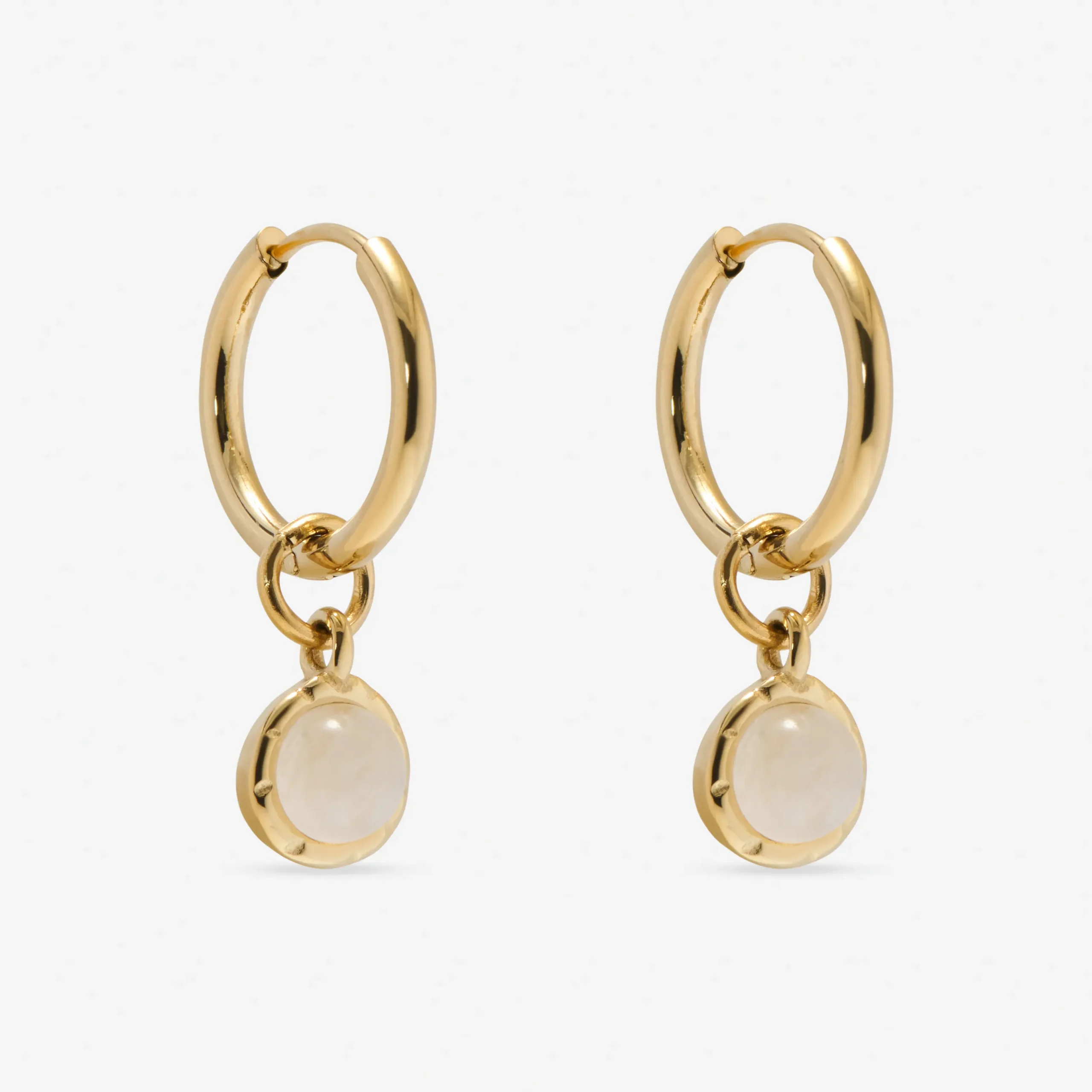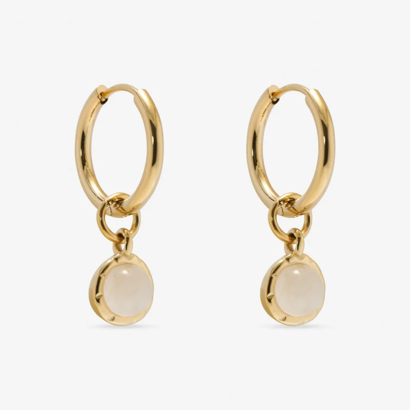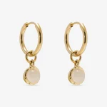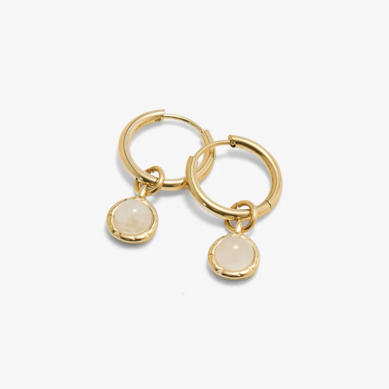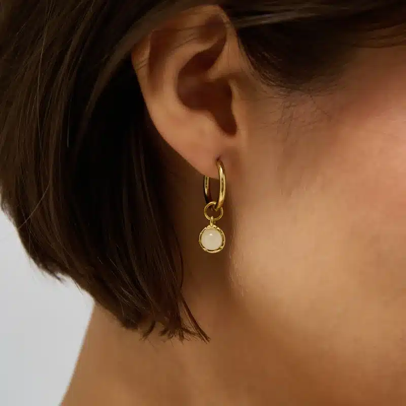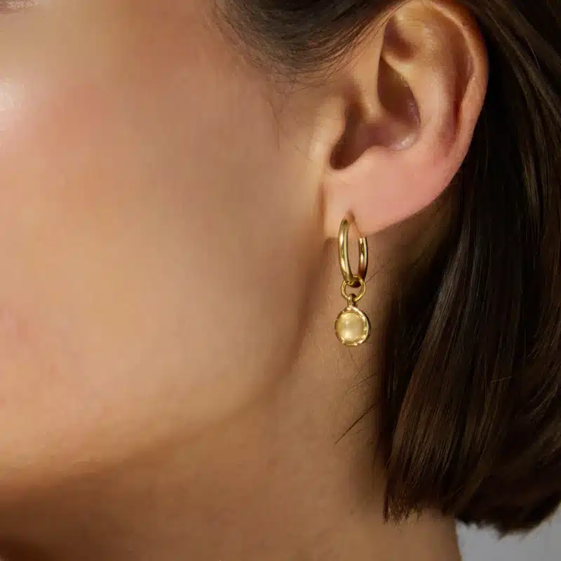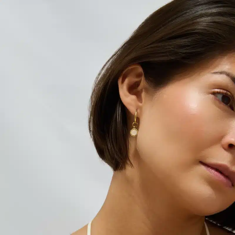 Our Amplify Drop Earrings feature a polished hoop paired with a detachable natural Clear Quartz drop charm — a clean, versatile design with powerful energy. The earrings come in two colours – we have milky clear quartz which has an off white colour and warm clear quartz which has a gold tone. See model photos for comparison.