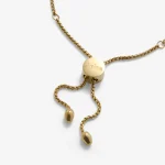 Our Dainty Bolo Bracelet is a slim, adjustable bracelet designed to sit gently around the wrist and move easily with you. It feels light when worn and settles comfortably in place, with the sliding detail allowing it to loosen or sit closer depending on how you wear it. The clean chain and subtle drop ends give it a quiet presence that works just as well on a workday as it does at the weekend. It’s the kind of piece you can put on without thinking and keep on all day.