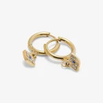 Our delicate Evil Eye Huggie features a sleek huggie hoop paired with a dainty evil eye charm.