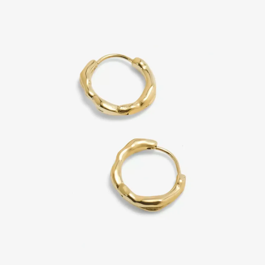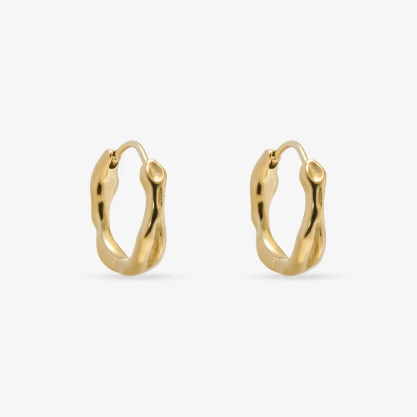 Our Molten Hoop Earrings are inspired by the organic flow of molten metal, each hoop features gentle curves and an irregular silhouette for a modern, elevated finish.