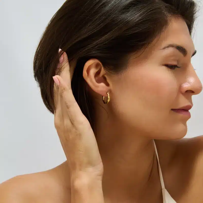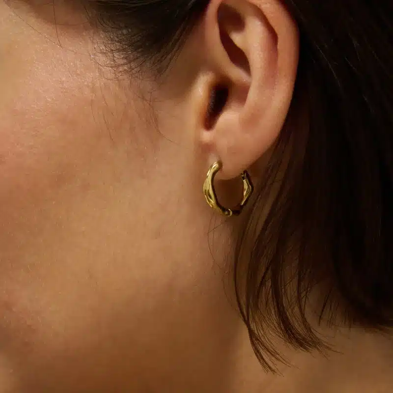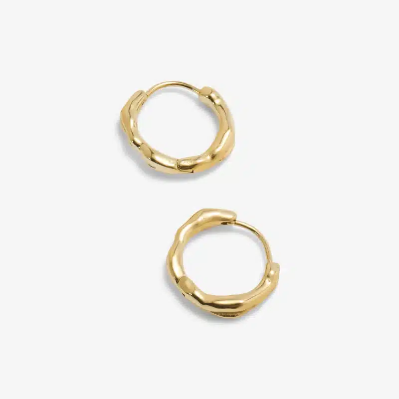 Our Molton Hoop Earrings are inspired by the organic flow of molten metal, each hoop features gentle curves and an irregular silhouette for a modern, elevated finish.