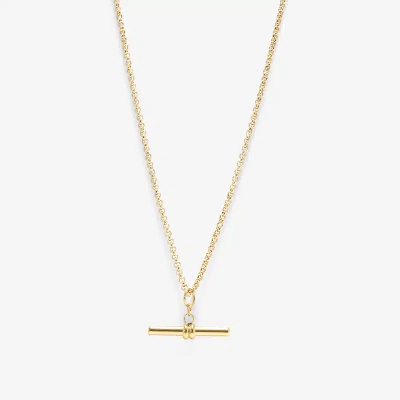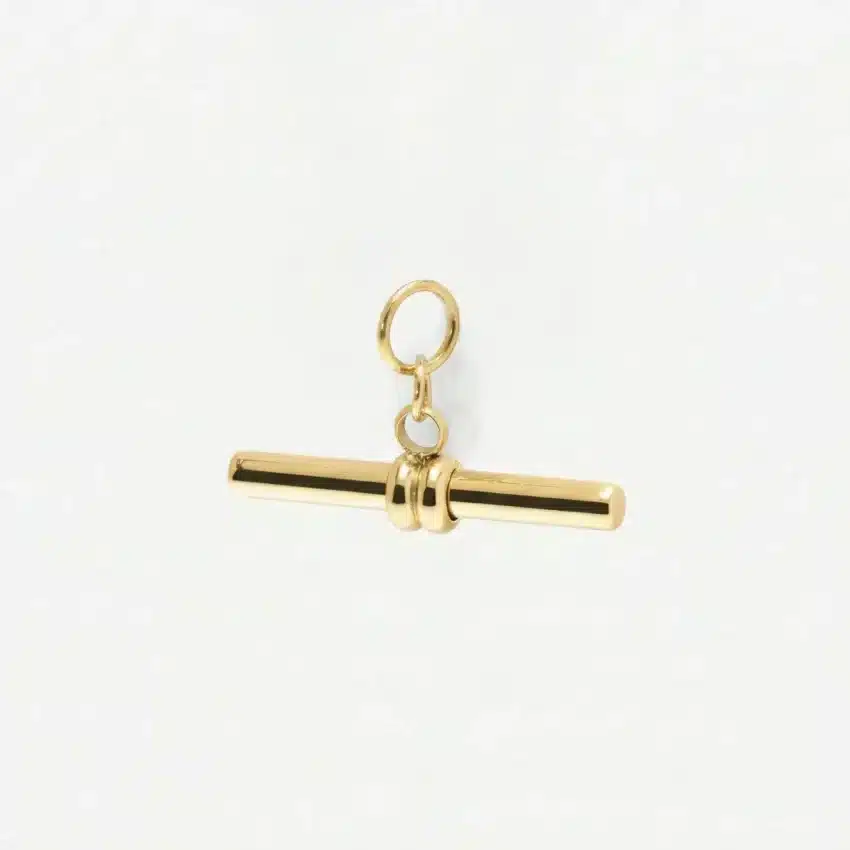 Our T Bar Charm is a timeless piece with a contemporary edge. Made from recycled stainless steel and coated in 14k gold PVD, it offers lasting shine with everyday durability.